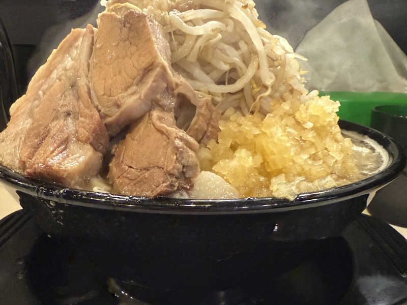 麺硬めヤサイ少なめニンニクアブラマシ きっとヤサイ少なめじゃないと思いながら完食