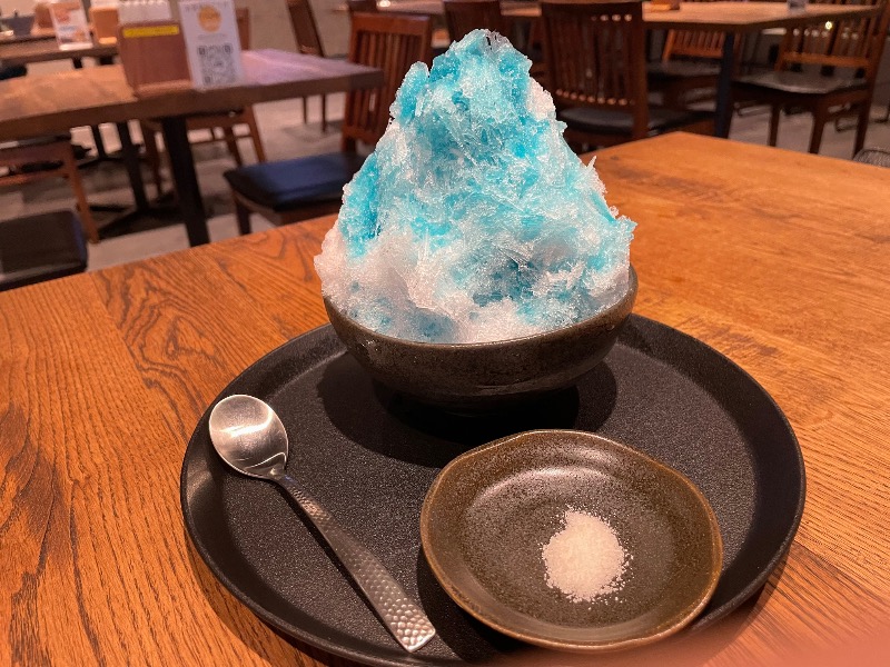 優しい氷でトッピングの塩をつけると甘さが引き立つ…まるでスイカのよう🍉