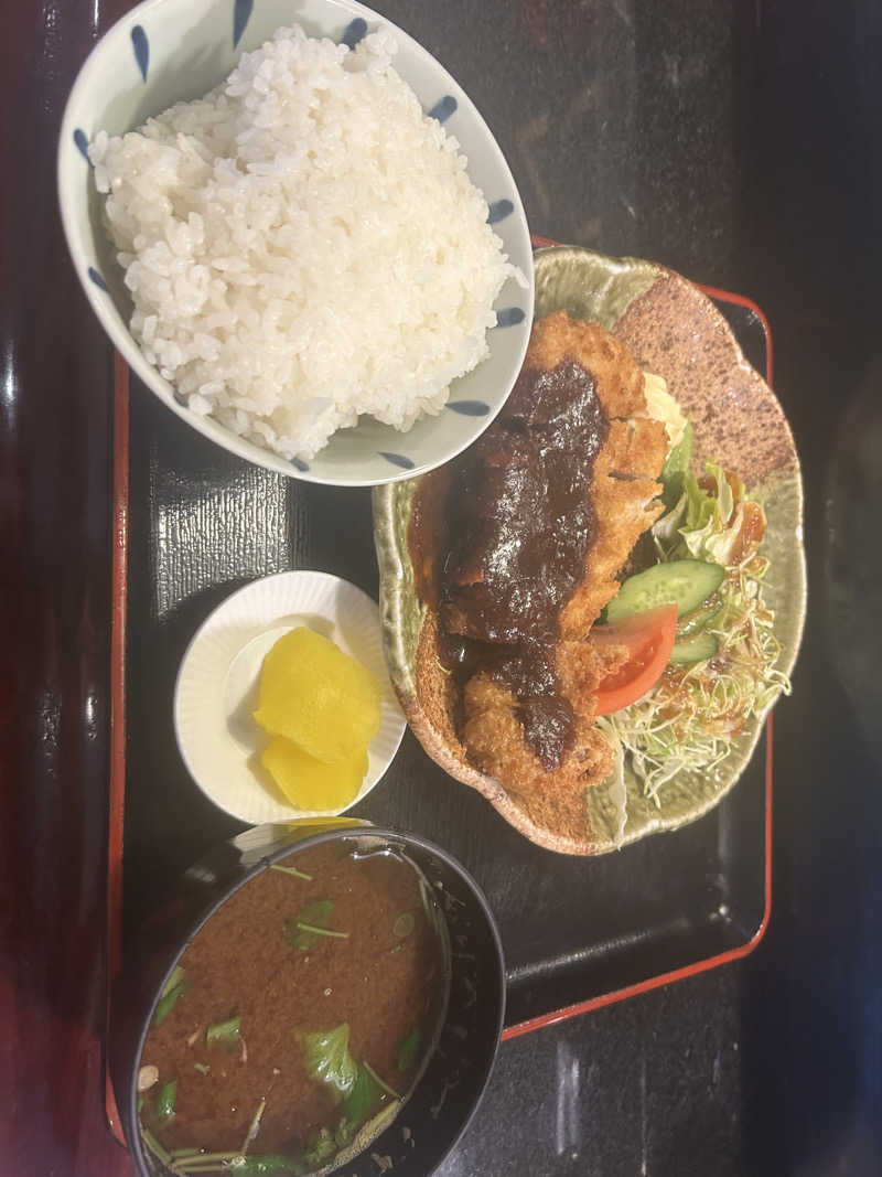 サウナの前のお昼ご飯は味噌豚カツ定食、赤だしも好きやし凄く満足🔥