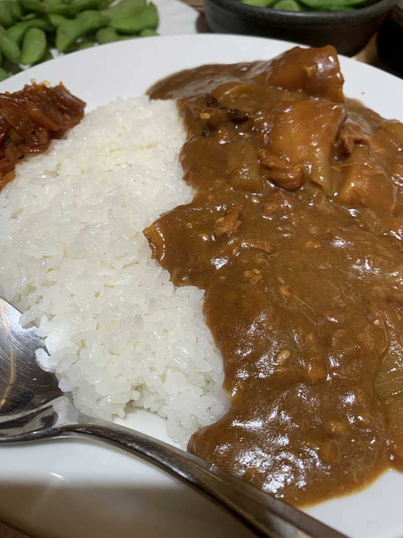 これがサウナのカレー。甘いだけじゃなくしっかり辛い。別添の燻製オイルと辛味がこれまた絶妙。