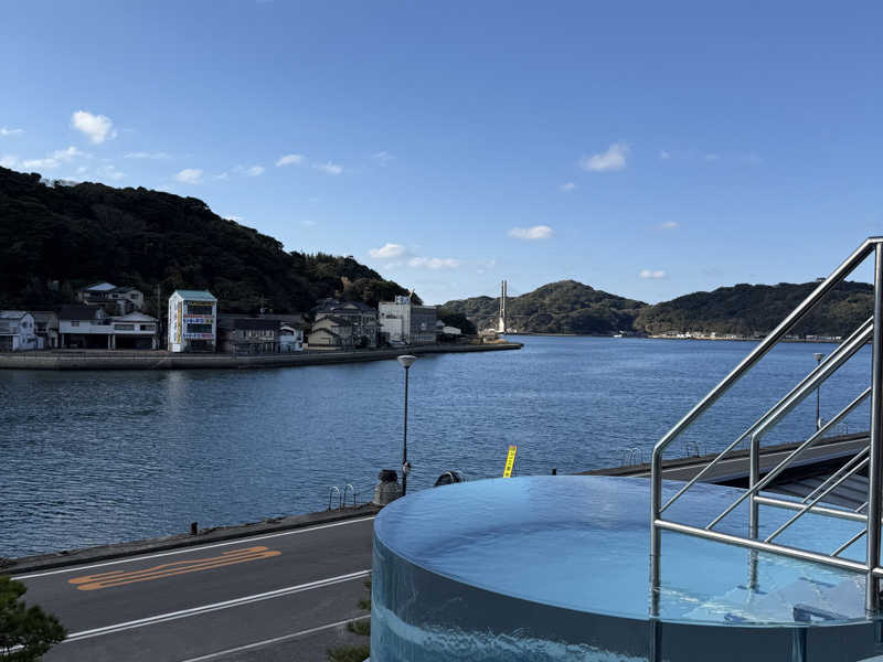 サウナ室から臨む別府湾の絶景と、海まで体感ゼロ距離の外気浴、露天風呂。島原の南風楼よりもさらに海を近くに感じる。