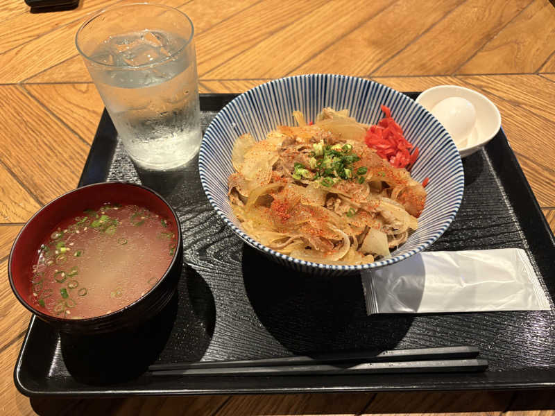 18:00になり、特別メニューの牛丼並に🥚で480円❗️牛丼チェーン店より安くて美味しい🤤