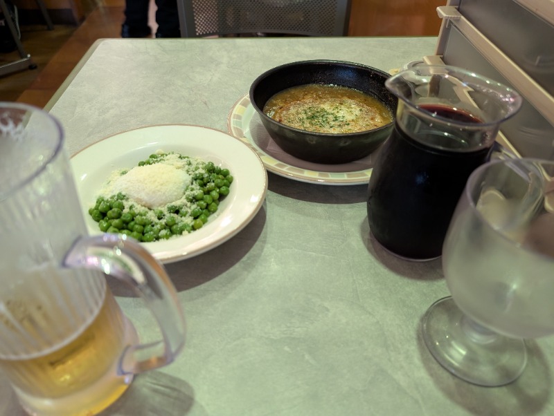 お疲れ様です、せいちゃんさん😄 サイゼリヤさんはなんであんなに安いのでしょうかね 1,100円笑 青豆もズッパもほぼ咀嚼せず喉越しを楽しみました☺️