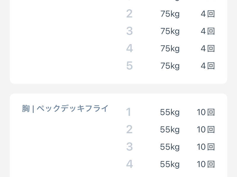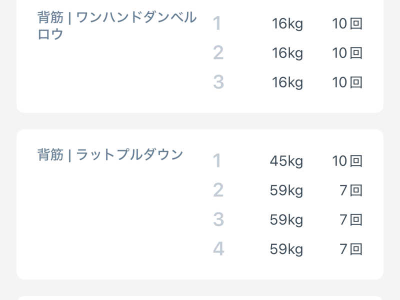 そろそろ重量上げるかと思い、トレーニングをアップデート。回数は落ちるものの、そこはセット数増やしてボリュームの帳尻を合わせていく。