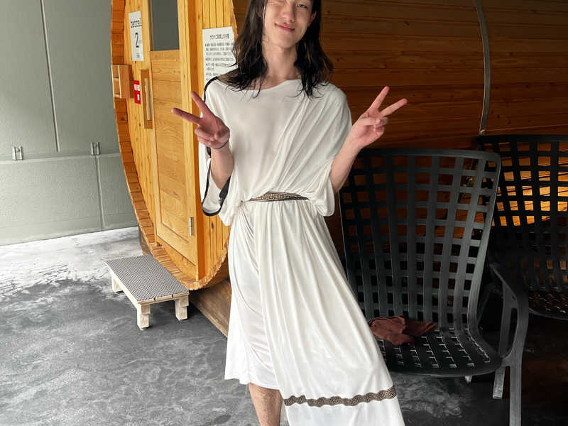 さあ入ろう!とスーツを脱いでいたらとまいちゃんから話をたくさん聞いていたキバコちゃんらしき人が熱波終わりで休んでいた!!