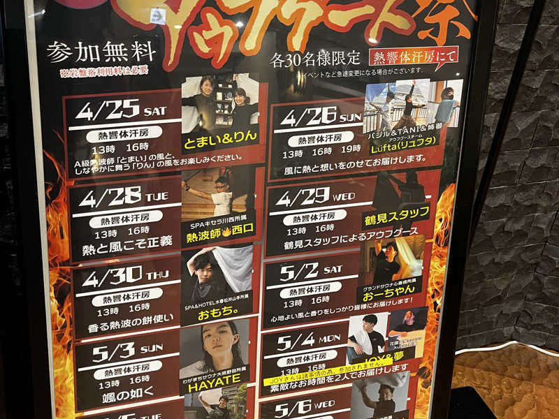 リニューアル記念アウフグース祭の一発目ということで、新しくなった岩盤浴に2人で緊張しながらも楽しく振らせていただきました💪🏻✨