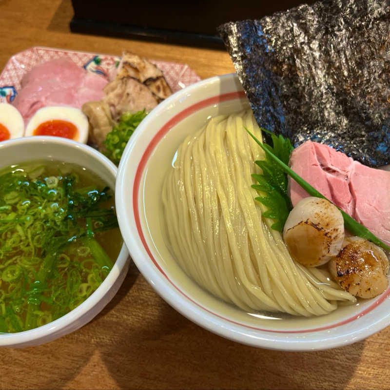 鶏と炙りホタテの昆布水つけ麺