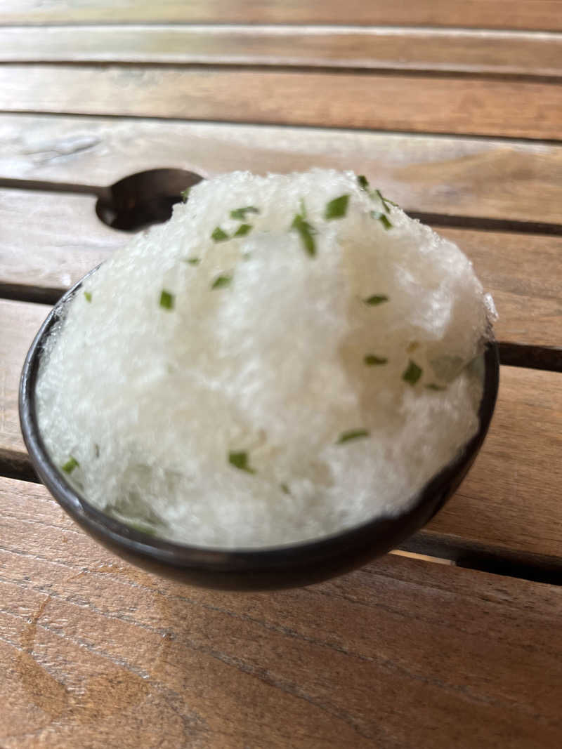 15:00 晴れ 外気温17° 風あり 広い浴場あちこちの湯船で温まりサウナへ行きます。男女入れ替えで本日はこじんまり側のサウナ。 こちらのサウナは最上段が1人座れるようになっている穴倉サウナ あかりも暗めで居心地よし水風呂と行き来し露天のある外気浴への繰り返し3セット あー😊いい風が吹いていて今日も楽しい