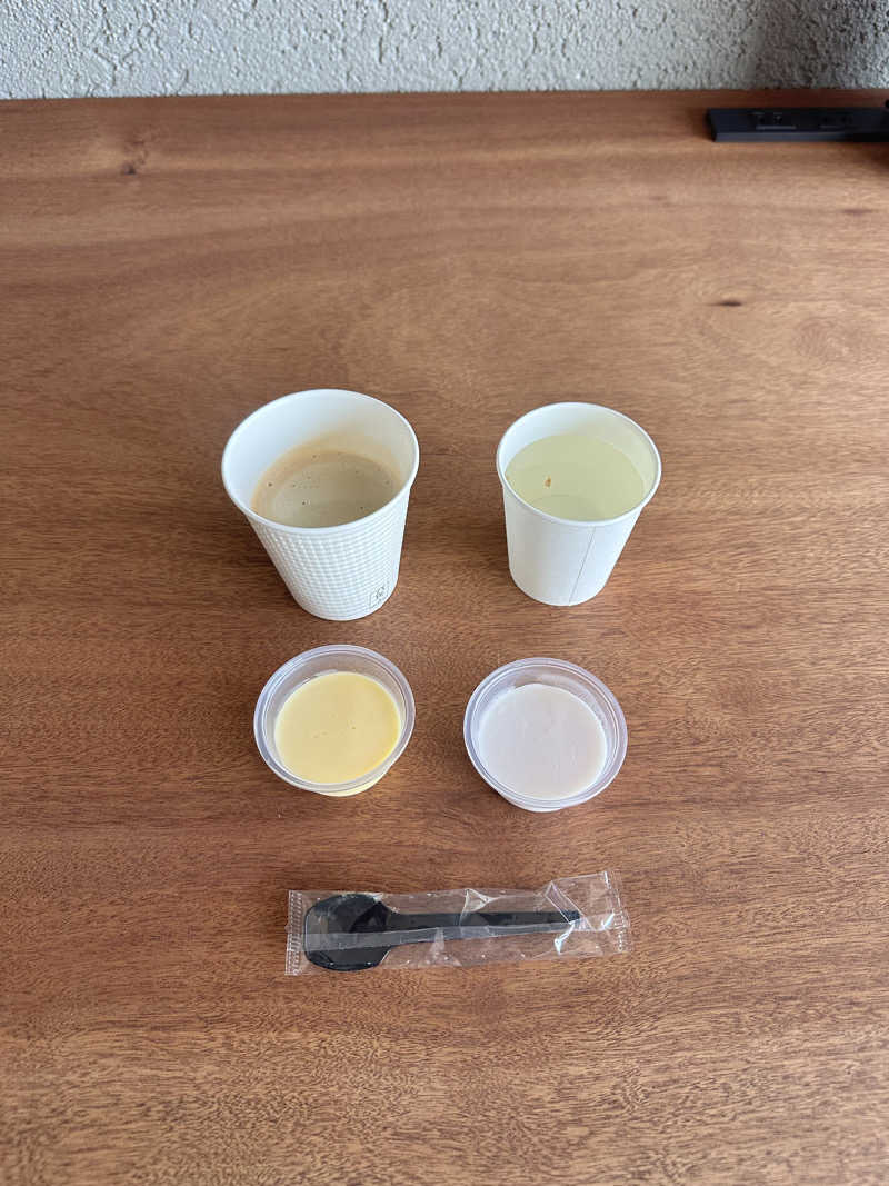ラウンジにフルーツ水やコーヒー、プリン、アイスなどがあって幸せでした