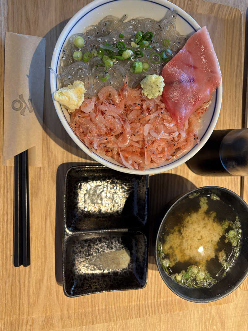 セルフではありませんが30分おきに従業員の方がロウリュしてくれるのでとても最高です✨従業員の方がおしゃべりさん達なので話しかけてみてください👍整いスペースは中と外(本当に外笑、通行人に見てもらえます※ポンチョ必須)がありました!僕は中で整いました!焼津市に来られた方は是非行ってみてください‼️サウナ後は汗を出し尽くして、お腹が空いたので生しらすと桜エビの丼を食べました🦐とても美味しかったです✨