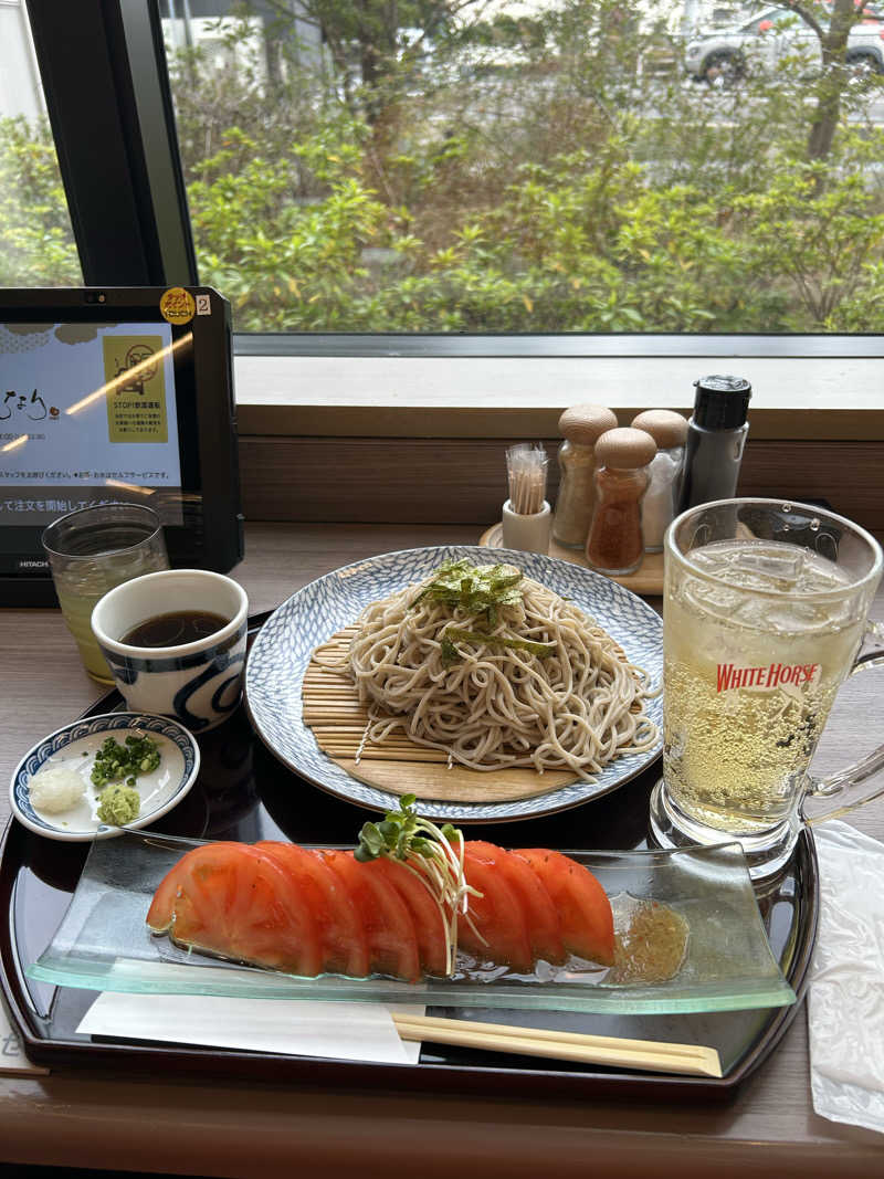 トマトサラダとハイボールとざるそば大