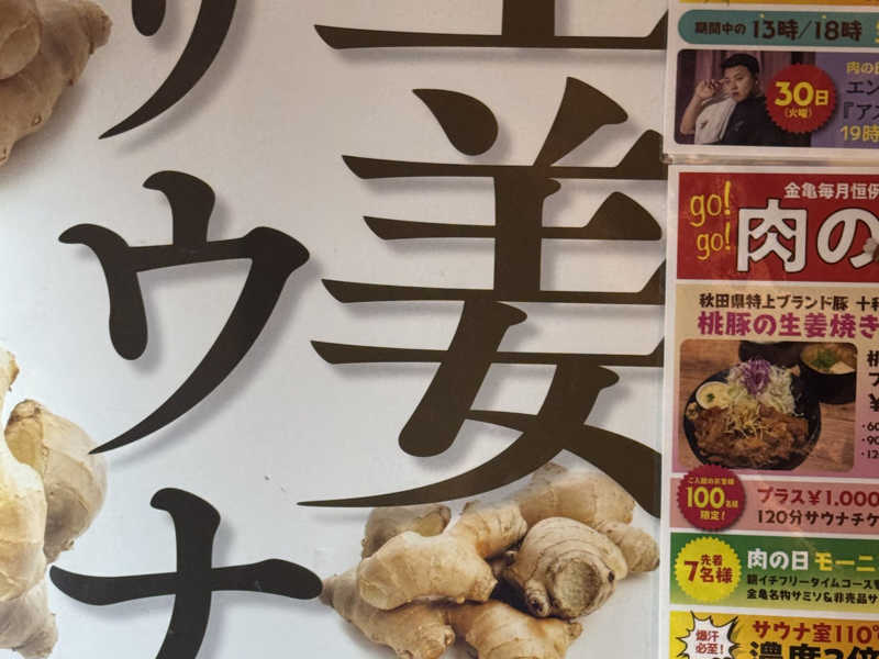 最初行った時は待ちが無かったが今日は10人ほど待ちが!人気の施設なんだと再確認させられた。30分ほど待ちようやく16時50分in!70分のチケットなのでスピーディーにこなしたいところ、髪と身体を素早く洗い、サウナへ行こうとしたらちょうど生姜キューゲルを使った熱波を1セット目から受けれた。最初の1セット目は1段目だったのでそこまで熱くないと思ったが割と熱い風が。それとともに生姜のいいかほりが!1セットが終了し、上段が空いたので座ったが少ししたら生命の危機を感じたので水風呂で締め2階の内気浴に。ここはサウナ東京と同じで暗めになっており、いろいろなチェアが置いてあったり、寝れるとこがあったり、風鈴などもあり別世界にいる感覚になる。特に横になれる畳になっているところは気持ち良すぎて寝てしまいそうになる。また2階に上がってすぐのとこにはタオルが使い放題と、サミソというおみそしる、あとだし?とお水が飲み放題になっている。一階にもお水と生姜水というものがあり少し甘くなってて個人的には生姜水が一番すき。短い時間だったが3セットしっかり温まり水風呂で締めて身体がポカポカしたまま終えることが出来た。唯一の改善点が脱衣所がとても狭いところ、、(自分がマイペースなだけかもしれないが)