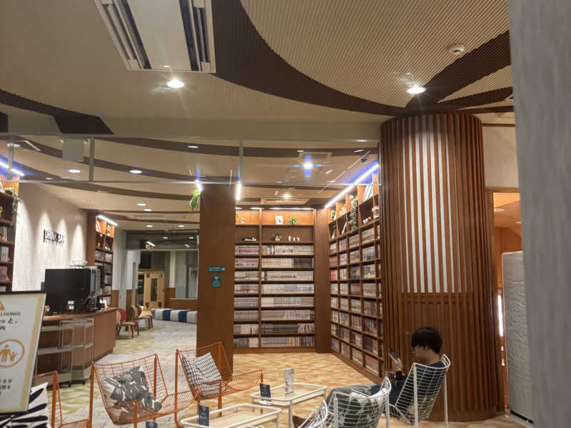 お風呂を出るとフロアにはリラクゼーションルーム、読書スペースなどがあり、お風呂上がりにリラックスするにはもってこいの場所でした。