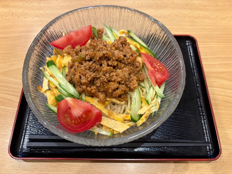 山盛りの挽肉が乗った冷やし中華がやってきて、
