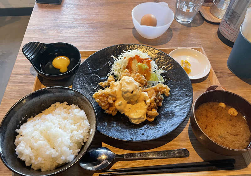 チキン南蛮も新鮮たまごかけ卵も最高に美味い😋