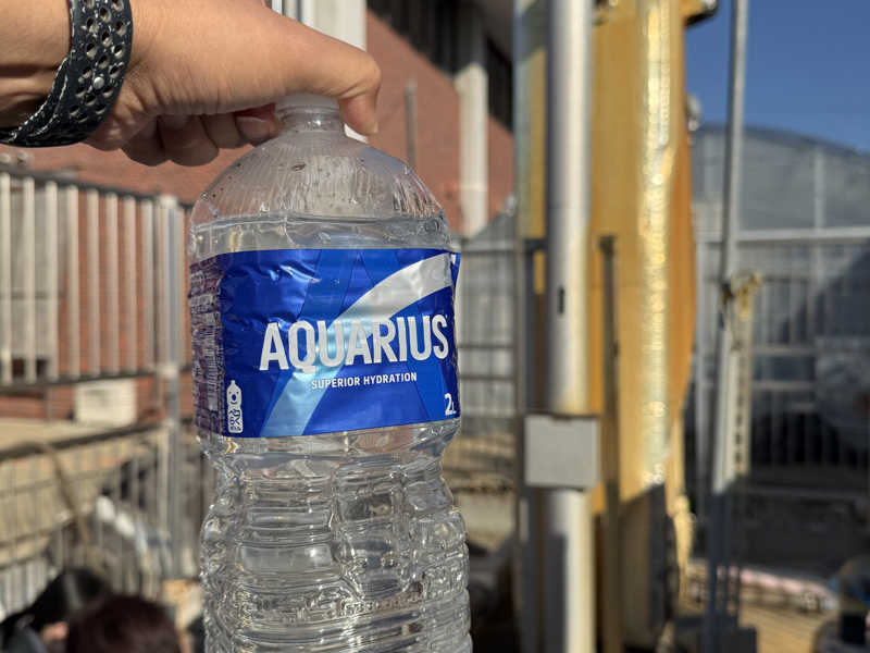 お尻に名物の青いタオルを敷いて着座。