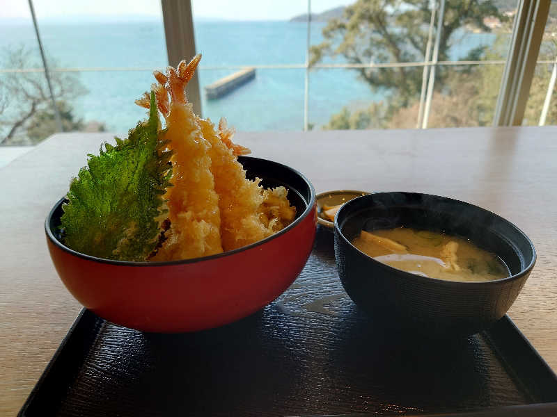 レストラン「海席」で食べた天丼も海を見ながら食べたのでめちゃめちゃ美味しかった。