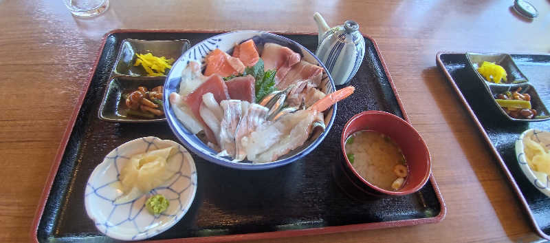 館内に食事処があり、海鮮丼がボリューミーで美味かった。値上がりしたらしいけど、一切れの大きさと種類で全然妥当。