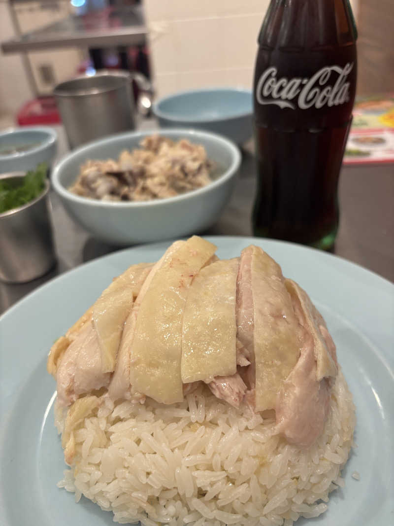大好きなカオマンガイ ジャスミンライスと骨スープの塩加減がたまらん ライスにニンニクの味するのも最高