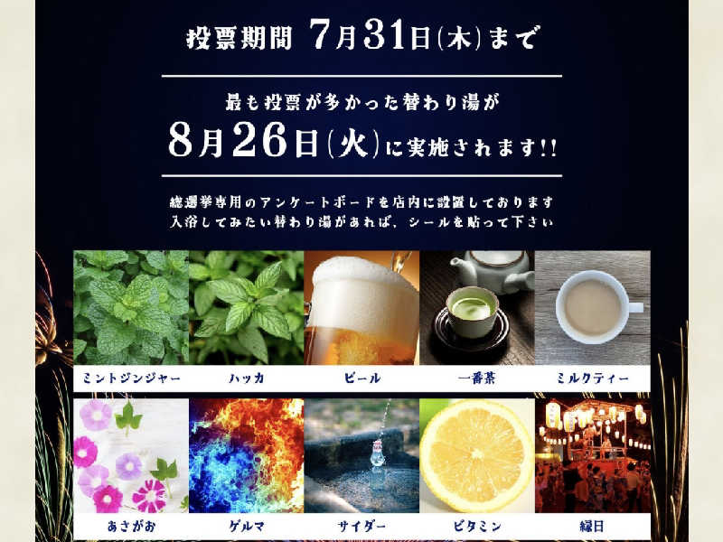 連休中の替わり湯、全部入りたいな〜✨
