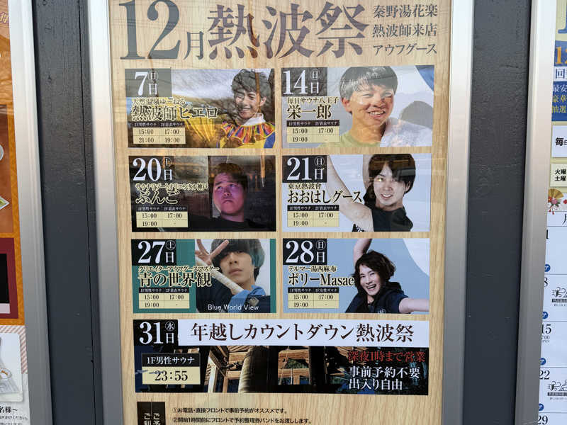 一言:クルマが故障したのでディーラーさんにクルマを預けて歩いて帰る途中に湯花楽。4セット。新人熱波師さん(ガンダム好きと本人言ってました)にあおいで貰いました。