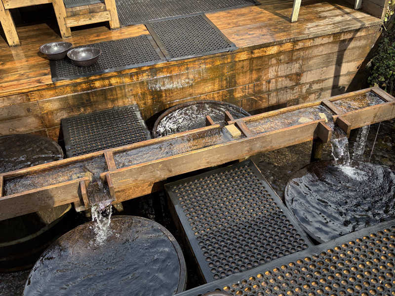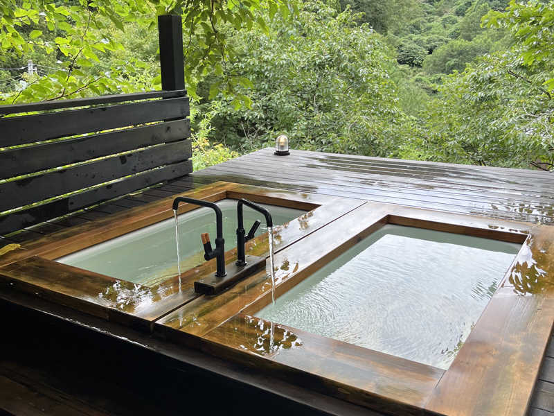 自然の景観と桶タイプの水風呂、サウナのバランスが非常に良かった! 飲めるシャワーが涼しげで夏には持ってこいでした!