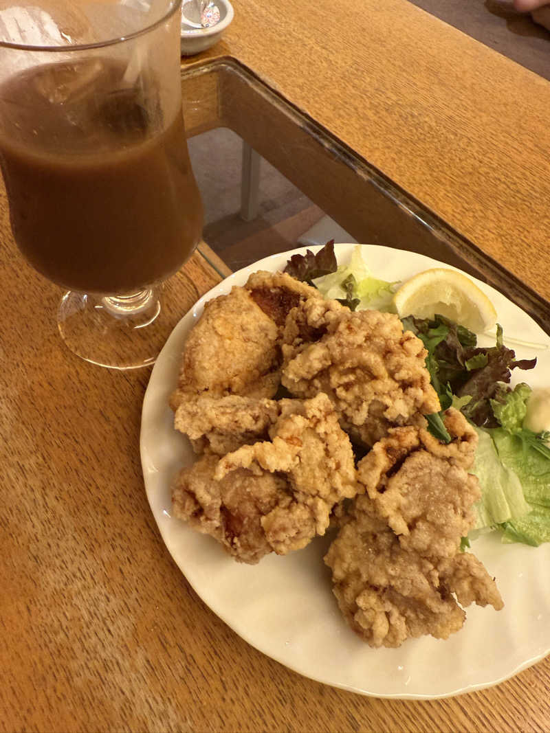 飯は唐揚げとアイスコーヒー!