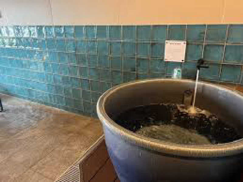 1人用の丸いバスタブが地面に埋められてるような作り。