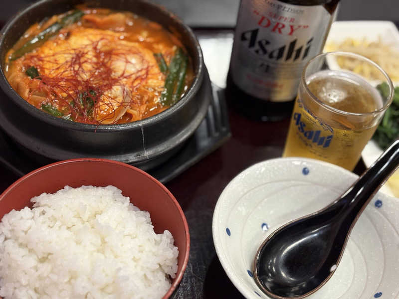 お腹が空いたのでレストランでビールと日替わりのスンドゥブ定食を食べて喋りまくった。😆