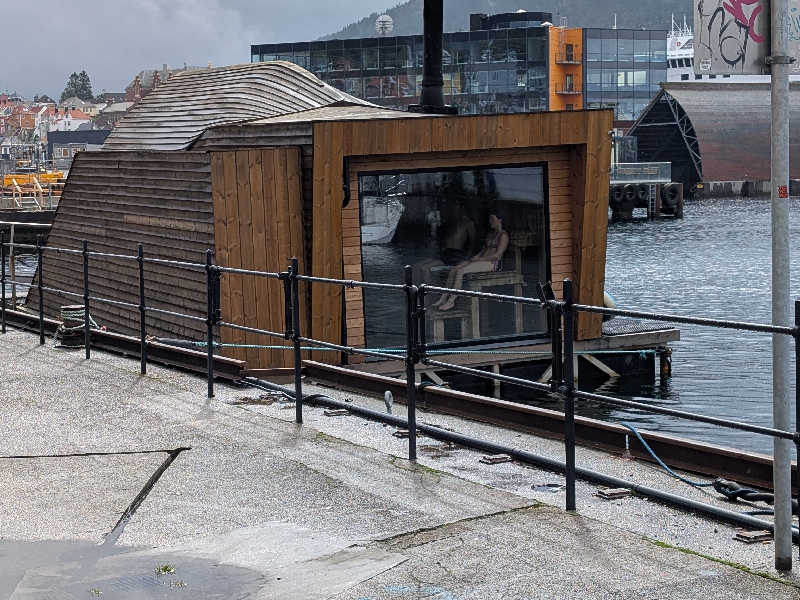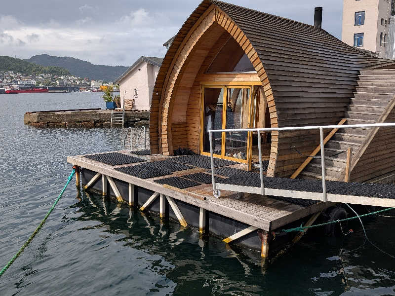 ノルウェーのベルゲンという町の港の近くにあるフローティングサウナです。