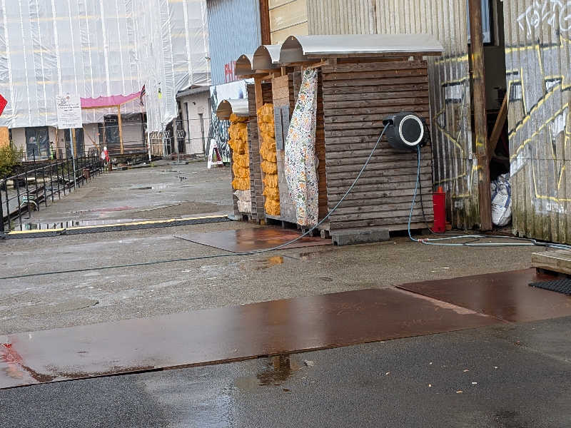 こちらの「サウナイキタイ」から見つけていきました。道順としては少し怪しげな駐車場のような、イベント会場があるような、ところを通っていくと看板があります。