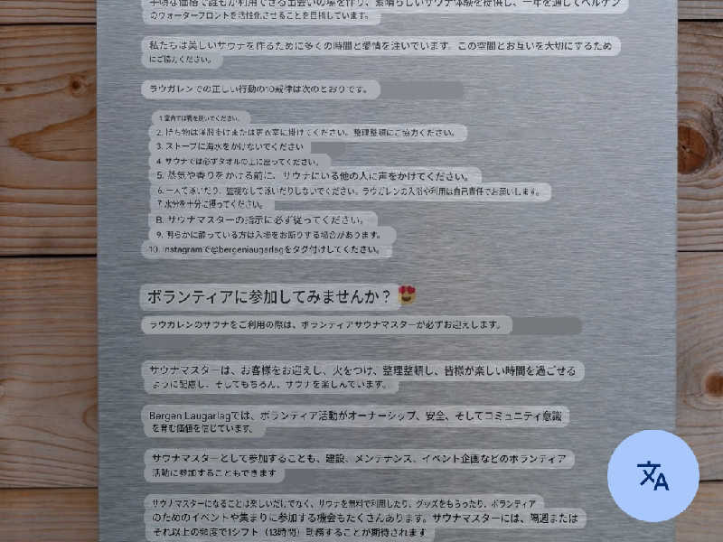 時間ごとのサウナマスターが時々ロウリュウしてくれて、熱波師の役割もしていただけて、時間の管理もしていただけます。簡単な英語なのでわかります。