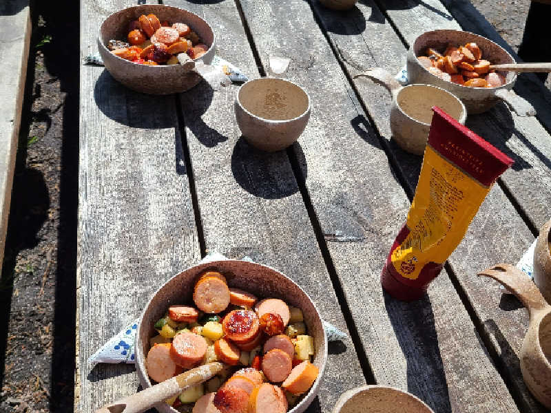 ハイキングを小1時間してから、途中ガイドさんがキャンプ飯を簡単に作ってくれました。その後、湖のほとりのスモークサウナへ。