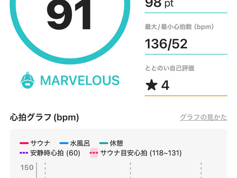 1セット目とそれ以降で心拍数の上がり方が全然違うのを最近実感😎1セット目は軽めにしておくとサウォッチのととのい値が高くなるようです