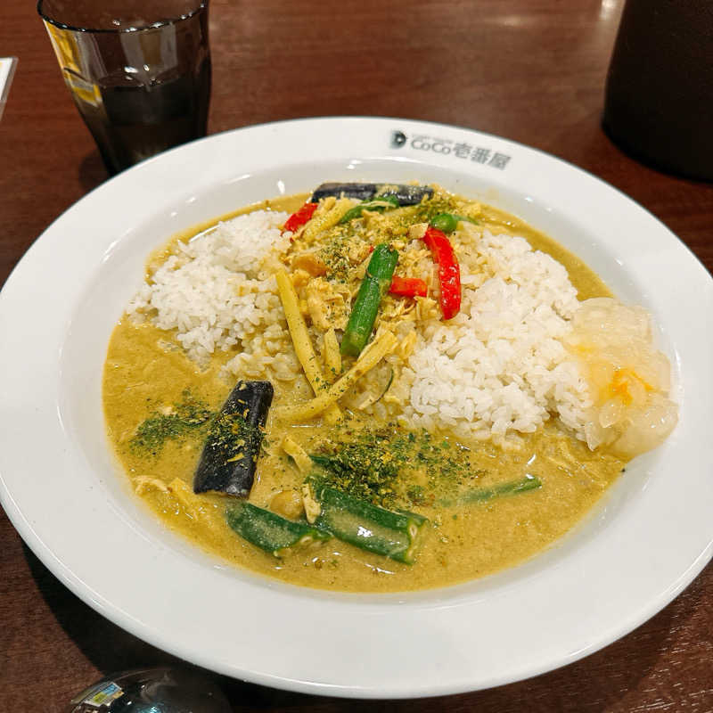 施設内の食堂、ラストオーダーを少し過ぎてしまったので、サ飯は近くのCoCo壱でグリーンスパイスカレー。