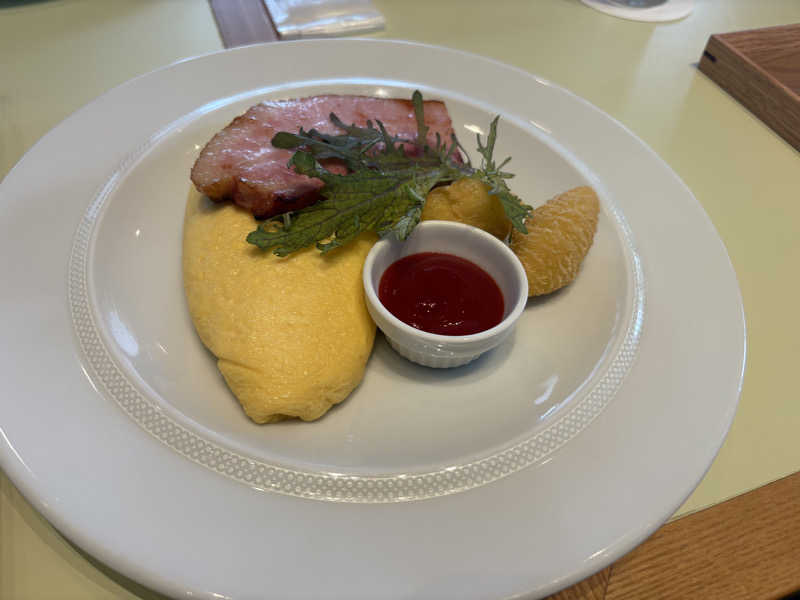 朝ウナの後は、ホテル近くのラリック美術館敷地内のレストランで朝食。オムレツはフワとろ。ベーコンも肉厚