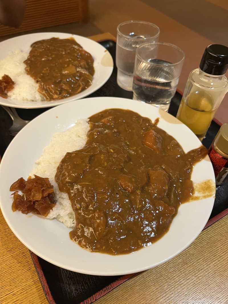 念願の聖地へ 6.1.4くらいを休憩挟みつつ4セット 若干昭和ストロング系の温度高めサ室。 毎度のこと匂い重視派としては、ロウリュにちょっとアロマが入っているのは評価ポイント 何の香りだったのかは分からんが カレーも大満足
