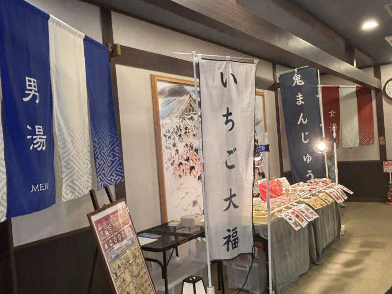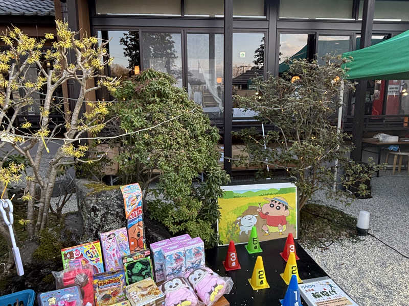 可児市の郊外にある、三峰温泉♨️さんへ行って来ました。 入り口には、露天で五平餅を売ってたり子供向けにゲームやおもちゃやらのおもてなしを受けました。