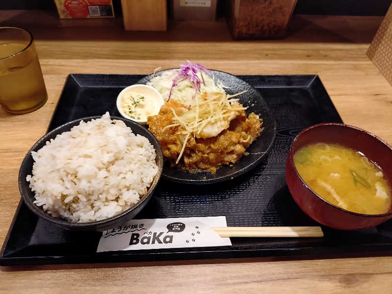 サ飯はもちろん1階のBaKaで生姜焼き定食!