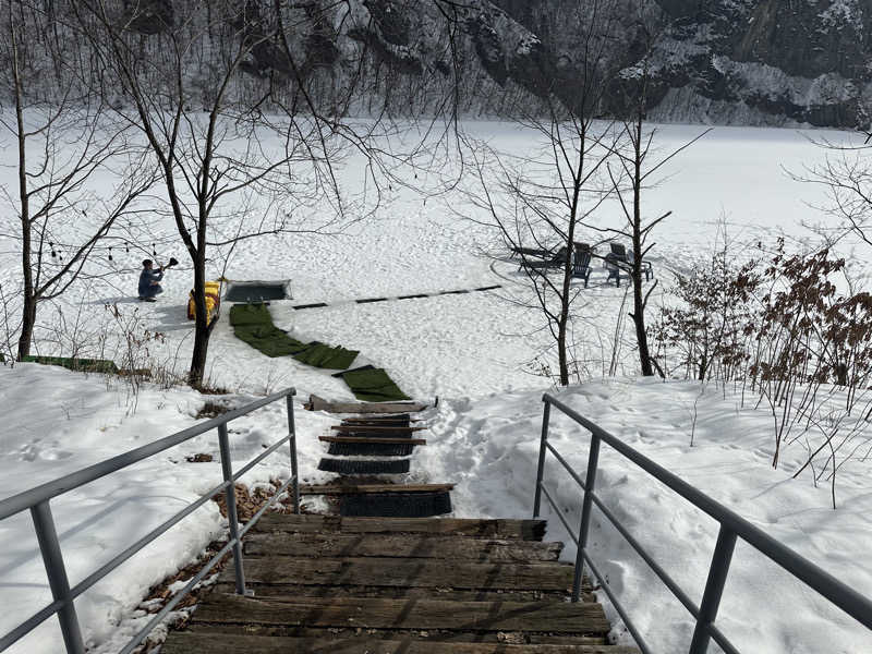 水風呂は凍った湖に穴を開けてドボンスタイル