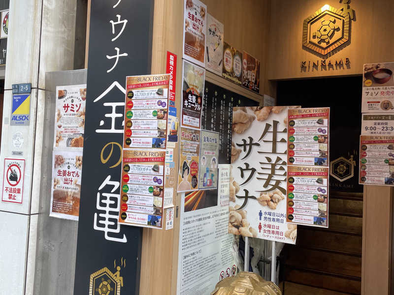 表参道にあるサウナグッズ専門店のサモモさんでお買い物をした時に貰った70分体験券が切れそうだったので、駆け込みで金の亀へ!