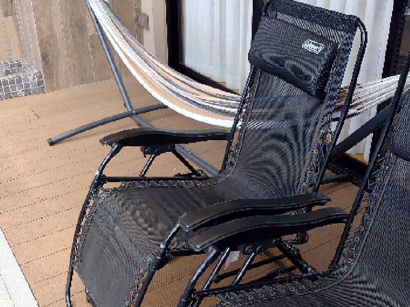 露天の外気浴スペースもリクライニングでサウナー仕様。すごいよね