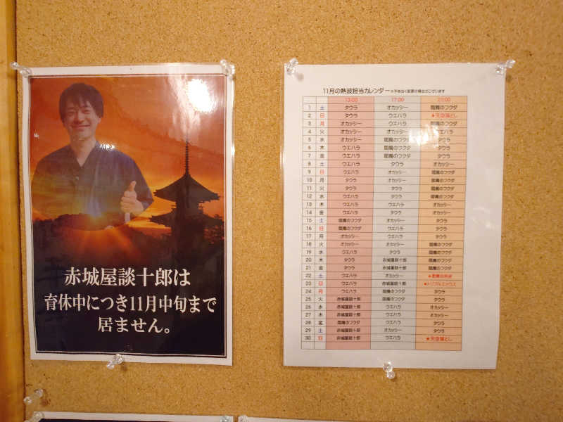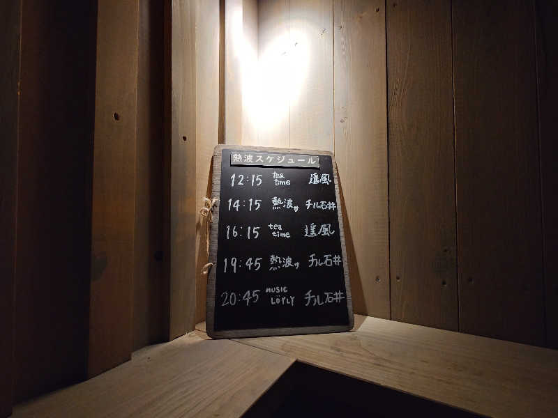 入口のロウリュの日程は過ぎた時間のものが書いていた。これは終わったのか?まだやってないのか?このロウリュのタイミングがかなりアバウトなので判断がつかない。とりあえず入っていたが、結局ロウリュは行われず。まあ、雰囲気がいいので別にロウリュに拘りはないのだけど(その割には毎回触れてる)。