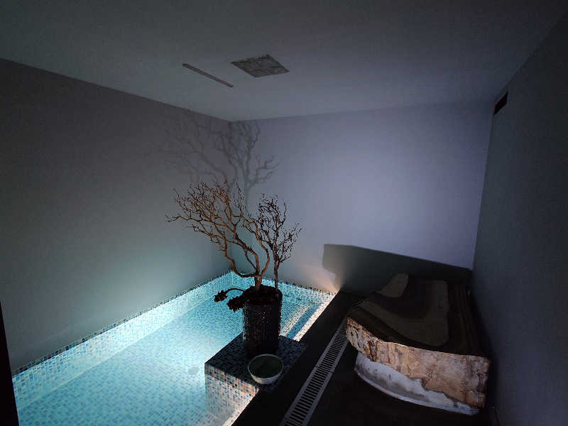 先にプールの方へ。物凄く広い浴槽に温めの水が張られている。4脚ほどその浴槽内に椅子が沈められていて、浮遊した感覚で休めると。「サウナプラトーだけの体験!」と謳っているけど、名古屋や大阪で見たことある気がする。まあいいけど。