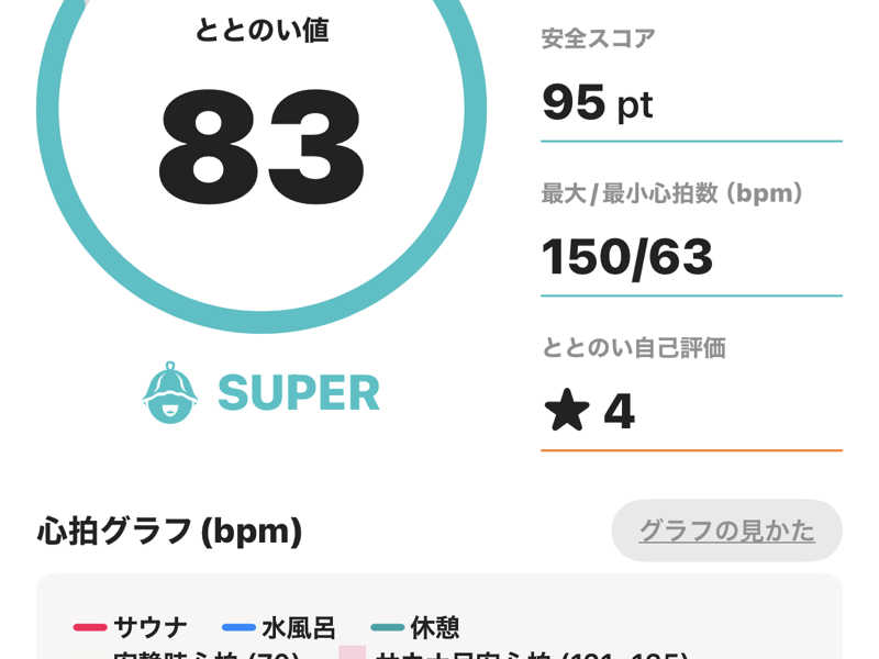 心拍ととのいが数字で見えるのが面白い。