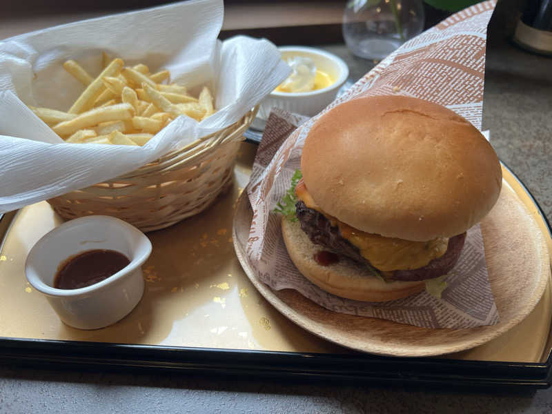 いつも1階の蕎麦屋行ってたので2階は初。ハンバーガーめっちゃ旨かった、次はハンバーグ定食にする