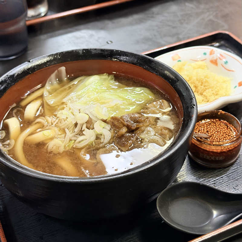 だしの中に味噌のコク、コシの強い麺は噛むほどに甘味が広がる。甘辛い肉とキャベツのハーモニー。