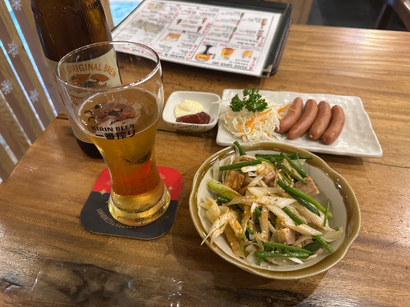 サ活後はキンキンのビール大瓶が最高にしみる。2日連続でラーメンで締めちゃいました。