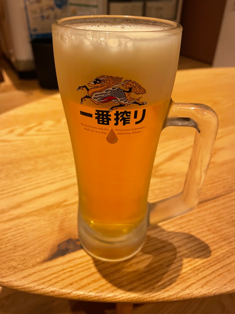 ついにえごた湯へ。 熱々のサウナに水深深めの水風呂、内気浴も浴室内・更衣室と楽しめ、炭酸泉も良かったです。 薬湯入ってからのサウナは体内も体外も熱くて速攻出ました。笑 グラスそのまま使えばおかわり300円の一番搾りも最高でした。