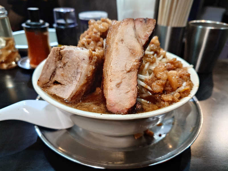 しっかり蒸されて汗をかいて、塩分補給のサウナ飯は安定のオノ二郎🍜
